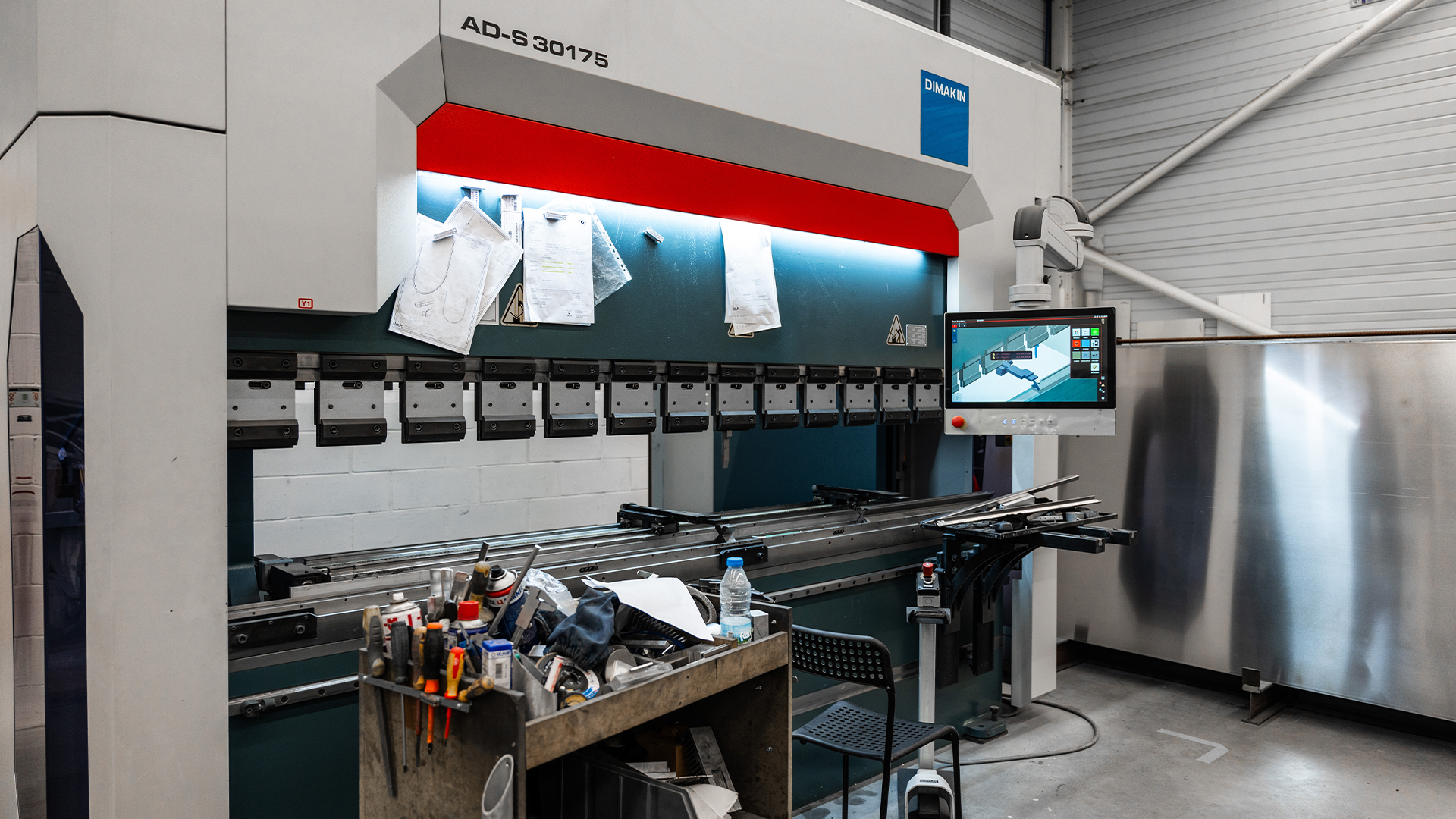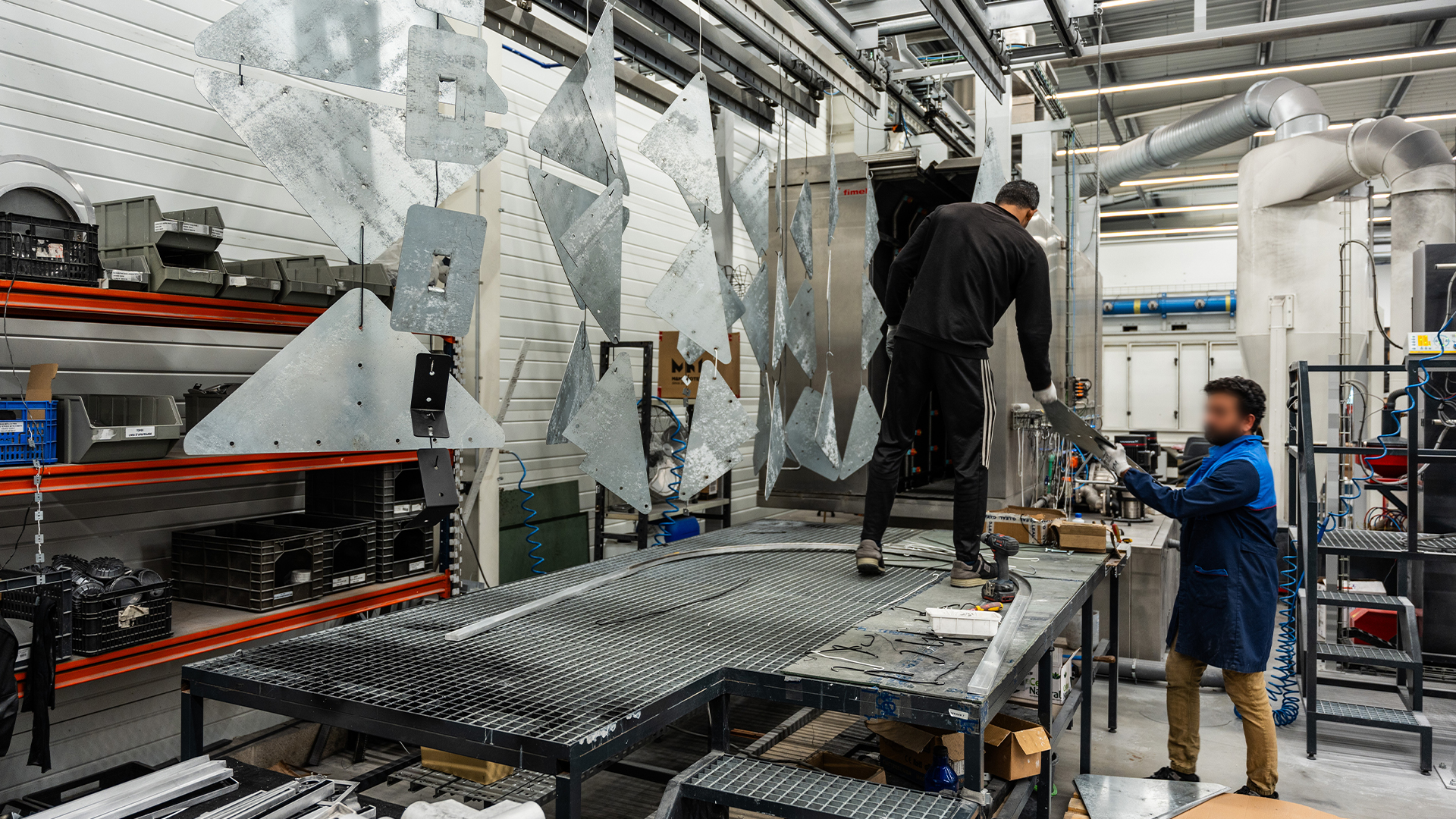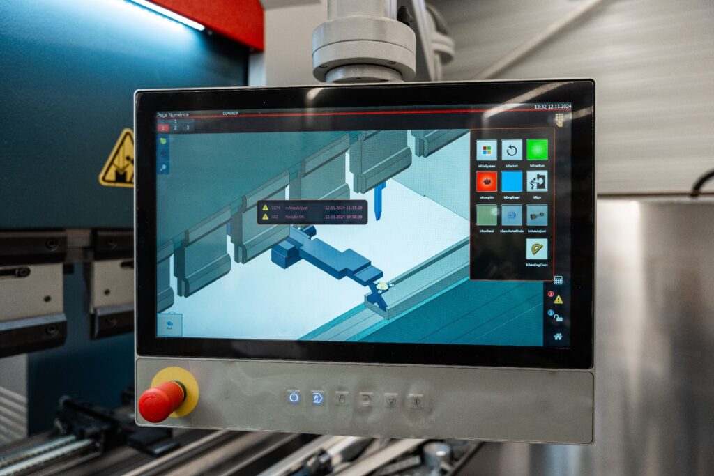 A transformação da chapa plana em componentes tridimensionais é executada por quinadoras CNC de última geração. O controlo digital do ângulo de quinagem assegura a repetibilidade exata em grandes séries, garantindo que cada luminária mantém a geometria perfeita projetada pelos nossos engenheiros.
