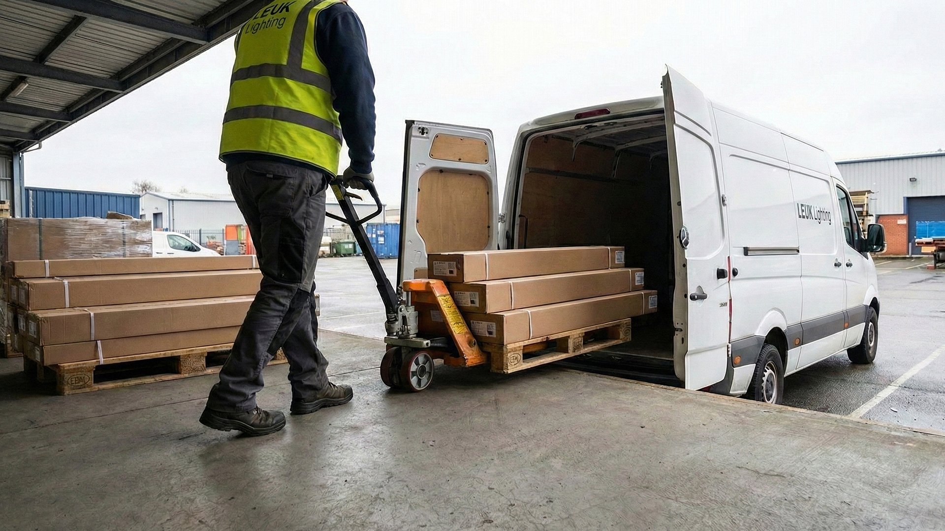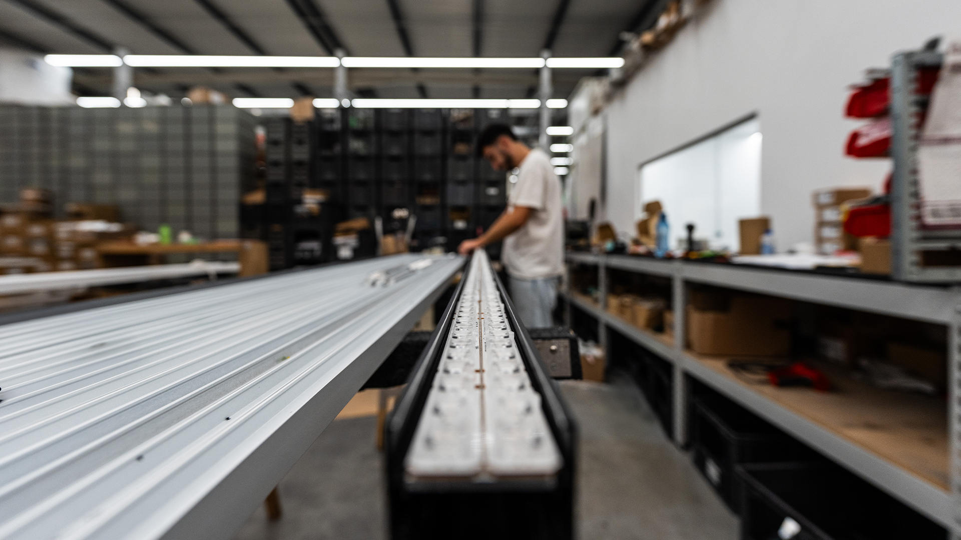 Não usamos caixas padrão. A nossa máquina de Packaging On-Demand produz embalagens cortadas à medida exata de cada luminária, independentemente do seu comprimento ou formato. Isto minimiza o desperdício de material e garante a máxima proteção estrutural durante o transporte.
